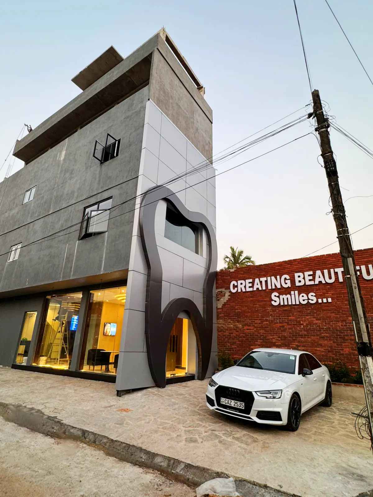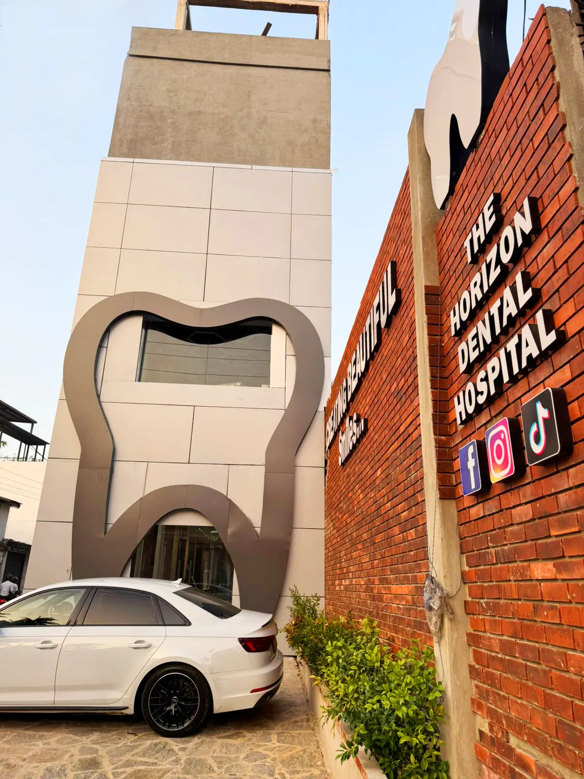 We successfully completed the exterior facelift of The Horizon Dental Hospital in Kelaniya, transforming the building into a modern, visually striking healthcare space. The design approach focused on creating a strong brand identity through a clean façade, contemporary material finishes, and a bold architectural feature inspired by the clinic’s dental specialty.